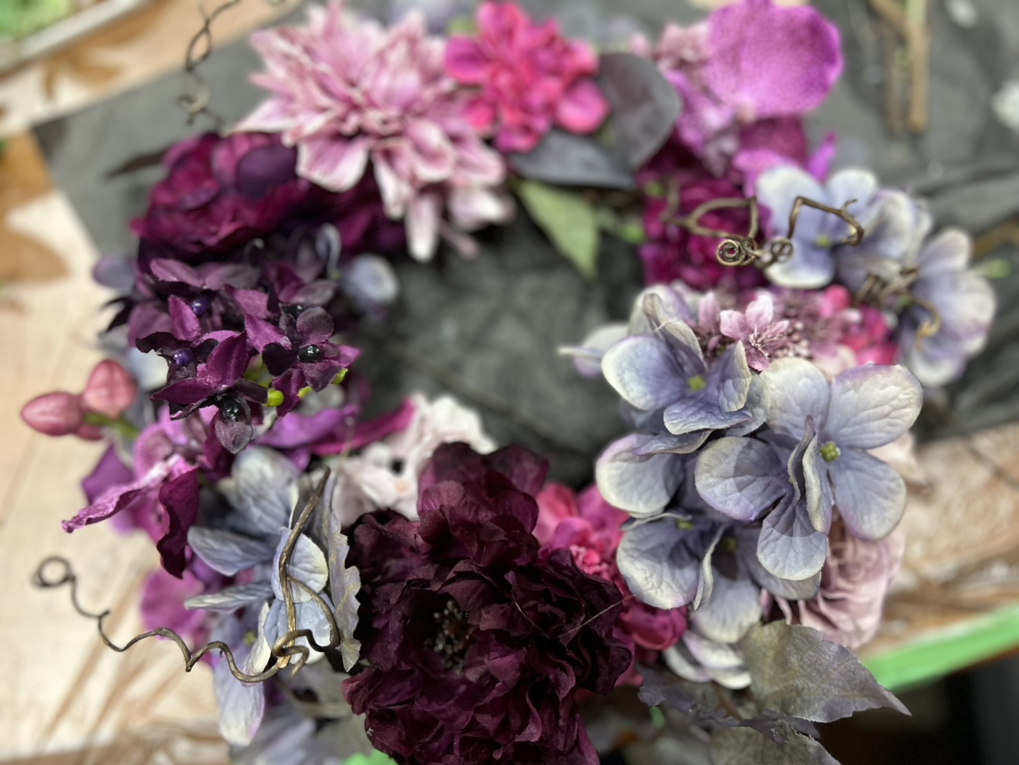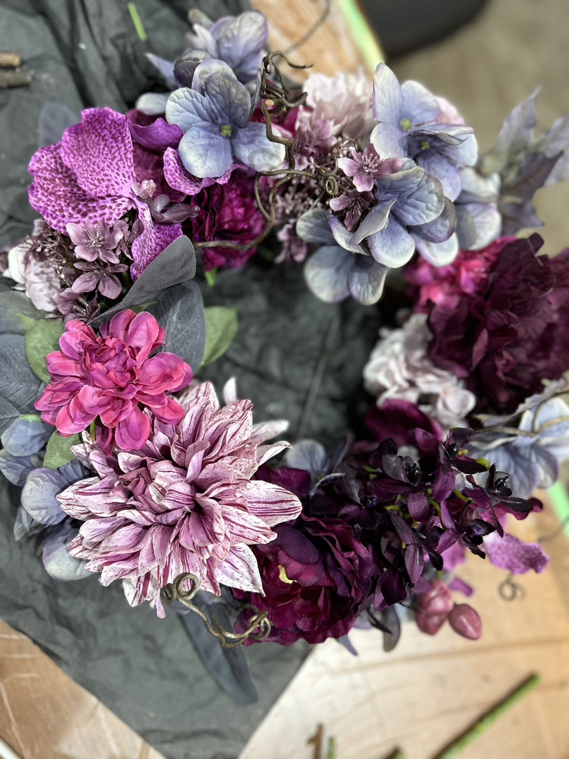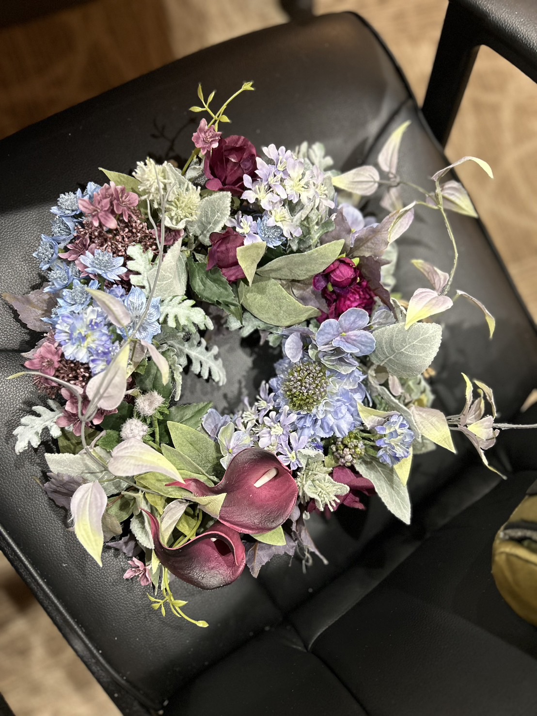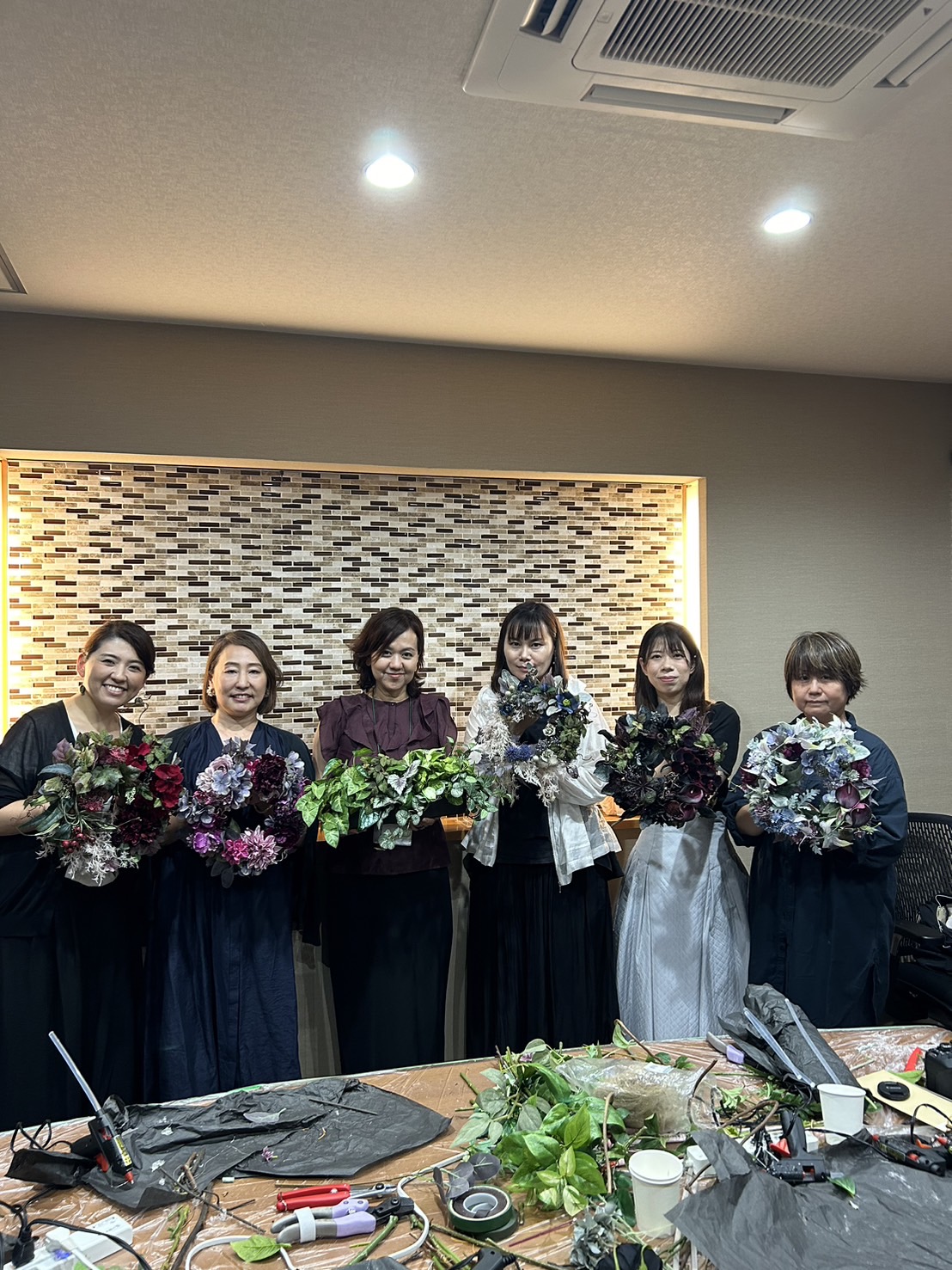アーティシャルフラワーでリースを作るのは初めてで、最初は扱いが難しいなと感じましたが、思っていたよりもしっかりしている分、ドライや生花よりも扱いやすいなと感じました✨自由にやらせていただきながらも、牧島先生のフォローとアドバイスのおかげで、とても素敵なリースが完成して大満足です。参加されている他の方の作品をみて良い刺激を受けることもでき、和気藹々とした空間でとても楽しかったです!💐